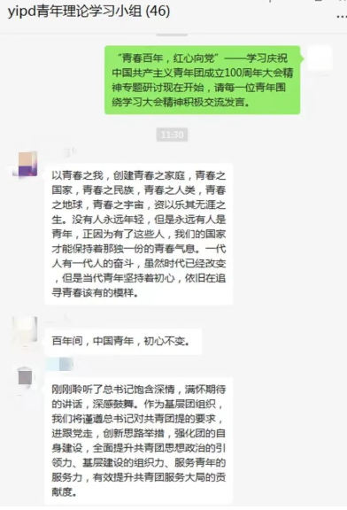观看结束后,团支部围绕“‘青春百年,红心向党’——学习庆祝中国共产主义青年团成立100周年大会精神”主题组织开展专题学习和交流研讨。